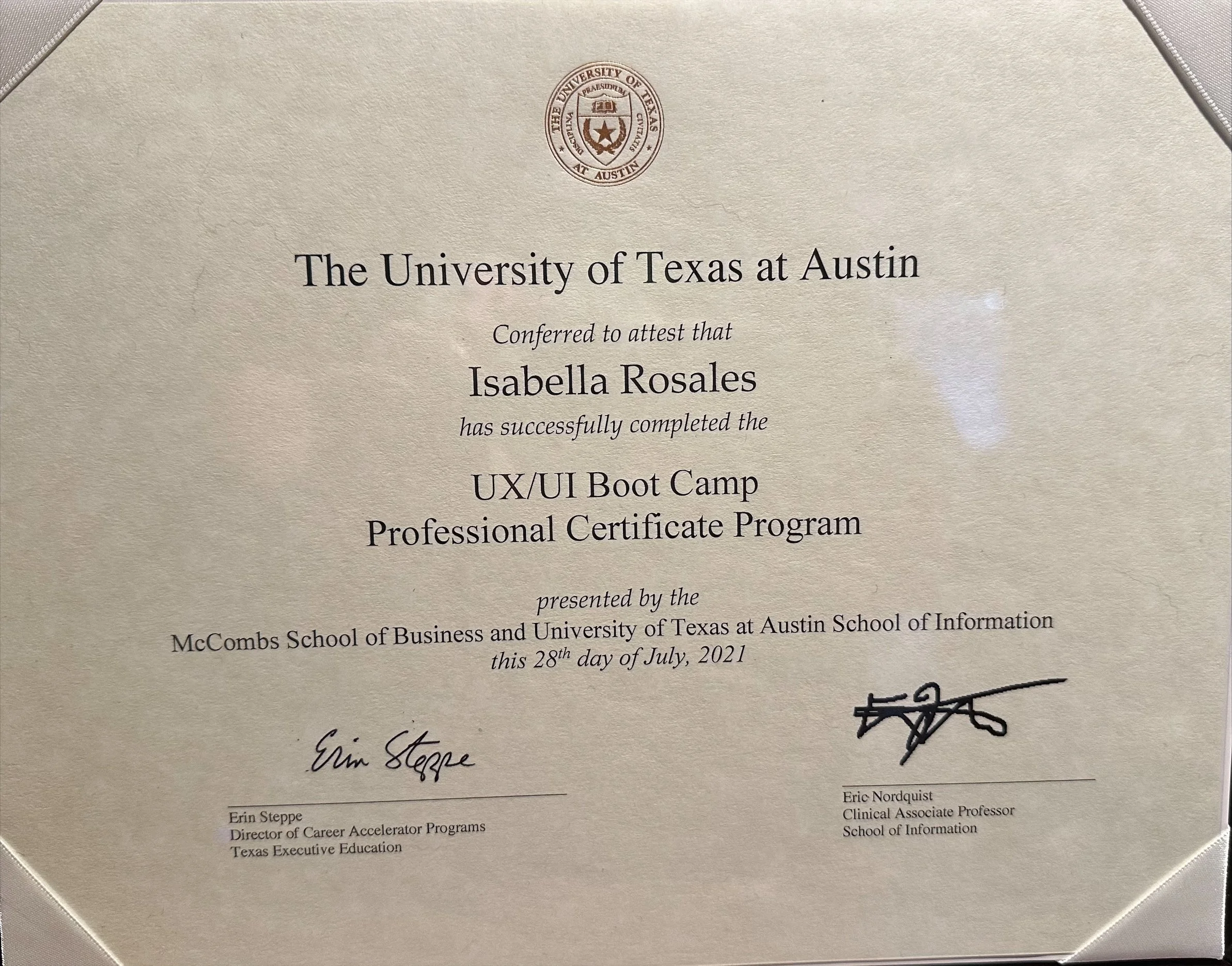 This was the start of my UX journey. I recieved this certificate from the University of Texas at Austin.